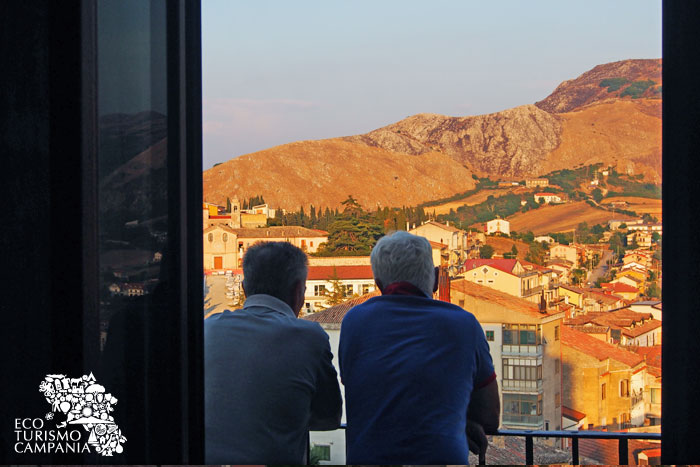 Alla fine di via Marvicino, la strada principale che taglia il centro storico, giungiamo ad un belvedere che volge al tramonto da cui si apre uno spettacolare ed ampio panorama. Da qui lo sguardo abbraccia i Monti Alburni, i ruderi dell’antico oratorio di Santa Veneranda, le ubertose colline coltivate ad uliveti tra Pertosa ed Auletta e, sulla destra, il Monte San Giacomo e la Valle del Melandro. Con le giornate limpide, inoltre, è possibile scorgere in lontananza il Golfo di Salerno.