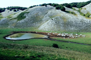 il laghetto alimentato dalla fontana de ri palumm, sul Matese Escursione nel Parco Regionale del Matese sul “Sentiero delle Fate“. Partendo dal bellissimo borgo di Gallo Matese, si cammina lungo un’antica mulattiera che da sempre unisce le popolazioni del luogo. Contornata da meravigliosi muri a secco, ricoperti da spessi manti di muschio, il sentiero si inerpica in località “Pescheta” per arrivare a Campo Figliolo. Il tragitto consente di ammirare il lago di Gallo insieme a tutta la valle sottostante, abitata anche da cavalli e mucche cresciute allo stato brado. Si giunge infine alla famosa fontana “de ri palumm”, sorgente che alimenta uno spettacolare e singolare laghetto.