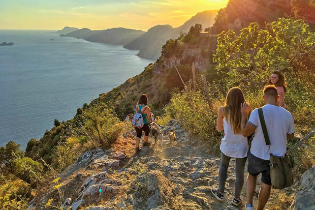 Trekking al tramonto sul sentiero più famoso della Campania, il Sentiero degli Dei, a picco sulla Costiera Amalfitana, immersi nella macchia mediterranea, tra paesaggi mozzafiato e splendidi panorami su Praiano, Positano e Capri. L’itinerario prevede una sosta nella piazzetta panoramica borgo di Nocelle, per godersi un’autentica spremuta di limone sfusato d’Amalfi prima di proseguire fin giù in spiaggia a Positano. Da qui è possibile ritornare subito ad Agerola in bus oppure andare in barca privata ad Amalfi per una passeggiata finale nella perla della Costiera.