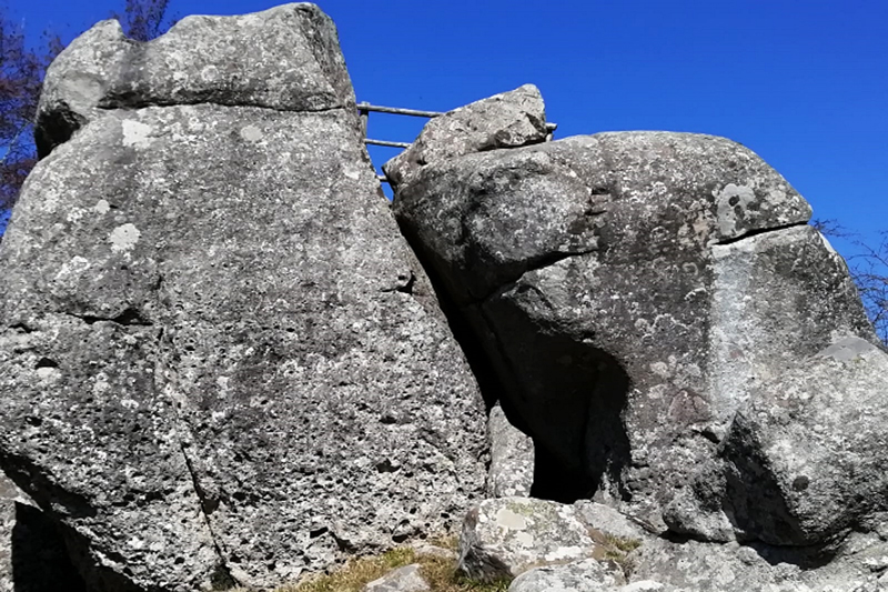 Il megalite Petra Ru Mulacchio nel CilentoTrekking guidato alla conquista della vetta del Monte Stella, nel Parco Nazionale del Cilento Vallo di Diano e Alburni. Il percorso inizia sulla strada che collega Mercato Cilento con Serramezzana, all’altezza del bivio per Punta della Carpinina o antenna di Perdifumo. Lungo il tragitto di incontrano i ruderi del Castelluccio longobardo, il megalite-dolmen detto la “Preta ru Mulacchio” e la chiesa della Madonna della Stella, sulla vetta a quota 1131 mt. Dalla Chiesa l’escursione prosegue lungo un sentiero molto panoramico che conduce a San Mauro Cilento, con il mare del golfo di Ogliastro di fronte. Lungo la discesa si ammira la singolare “Petra dell’Angelo”, bastione e “porta” della vetta del monte.
