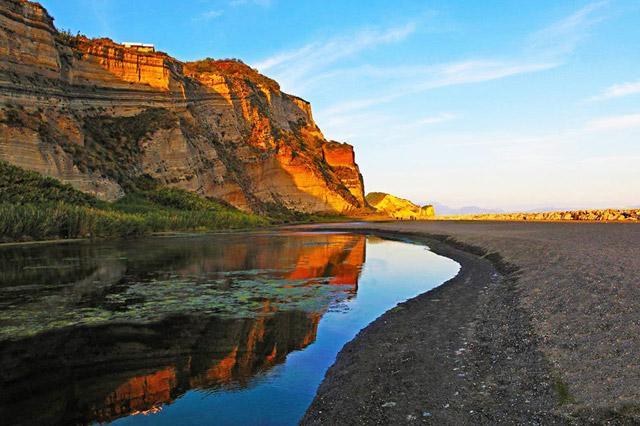 La “passeggiata di Torrefumo” è un percorso poco noto sulla costa di Monte di Procida (Na). Il sentiero inizia dal porticciolo di Acquamorta e prosegue verso la frazione di Miliscola, ai piedi della falesia del Monte di Procida, vero e proprio “museo stratigrafico” che racconta la storia geologica dei Campi Flegrei. Durante il percorso si incontra anche un suggestivo specchio d’acqua di origine salmastra dove nidificano uccelli migratori. Spettacolare la vista sulle isole di Procida e Ischia.