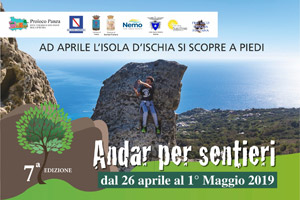 andar per sentieri 2019 sull'isola d'IschiaRitorna con la primavera “Andar per sentieri”, la manifestazione che propone escursioni guidate attraverso i sentieri più suggestivi dell’isola d’Ischia. I percorsi di trekking portano alla scoperta dell’entroterra più selvaggio e contadino, della sua bellezza spesso nascosta e della sua storia millenaria, con incursioni di geologia, biologia e antropologia. Dal 26 aprile al 1° maggio, in programma ci sono 12 escursioni guidate, due al giorno, che attraversano luoghi affascinanti come il belvedere di Serrara, il bosco dei Frassitelli, i Giardini Ravino, i Giardini della Mortella, il Bosco della Maddalena, il Monte Epomeo, Piano Liguori, la Baia di Pelara e il bosco della Falanga.